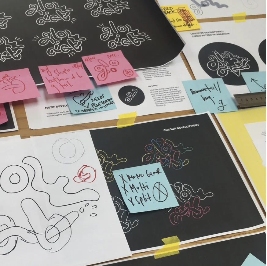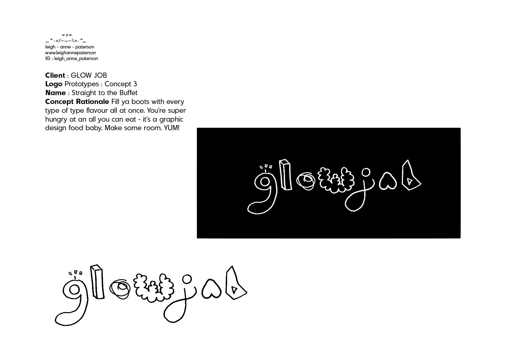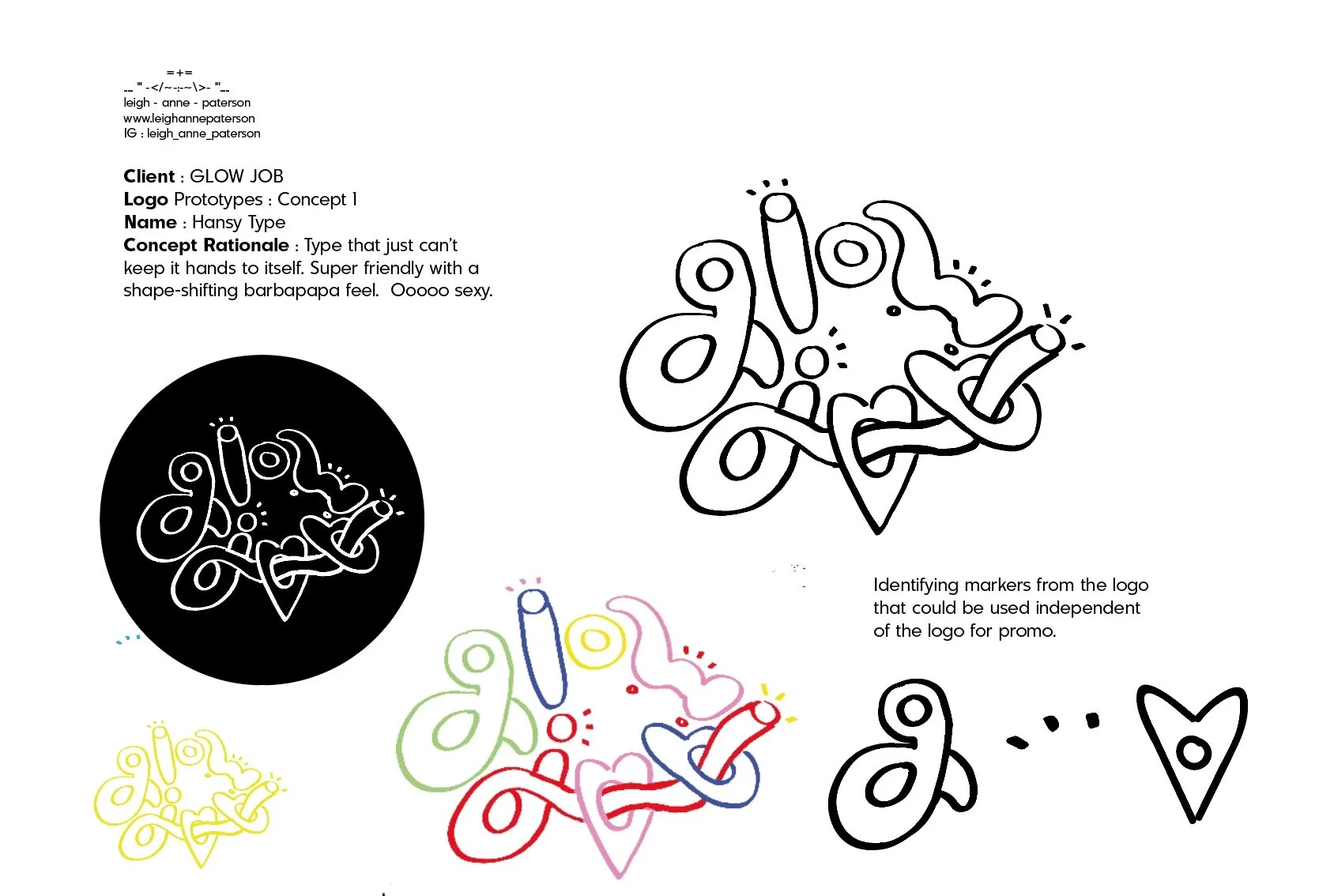 The Glowjob logo was hand rendered emulating the manufacturing process. Hence there were many versions of the logo that were developed before we hit the g-spot! Here is a taste…
