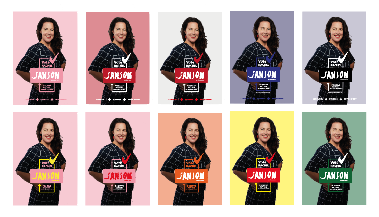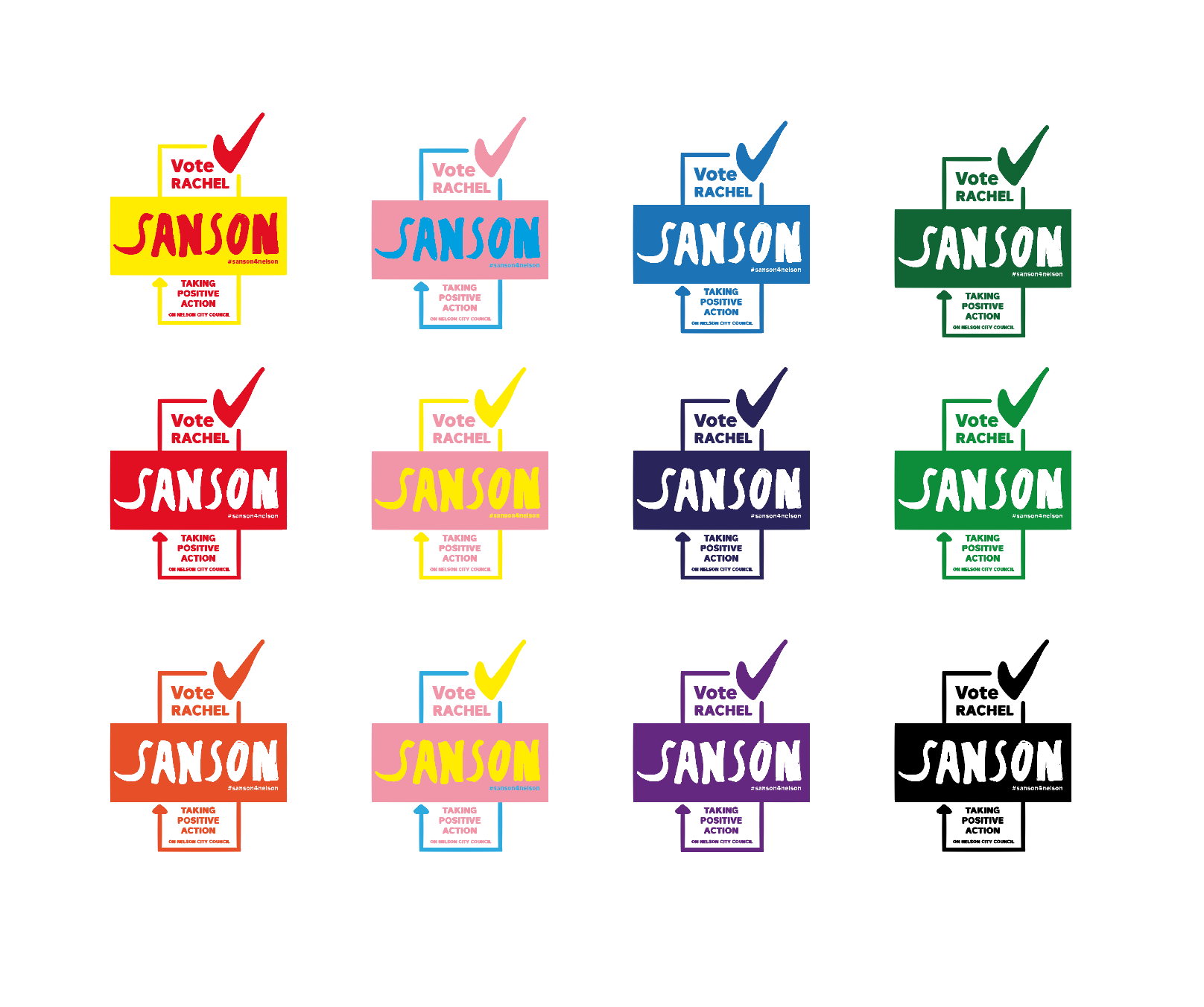 Hand rendered personalised typography was generated to strengthen Sanson’s campaign and public perception. Given the rich herstory of activism and enduring professionalism which forms a significant part of the candidates past, present and future kaupapa, SANSON FREE was created as a nod to the strength of the literal and figurative character translated through appropriate typography.
