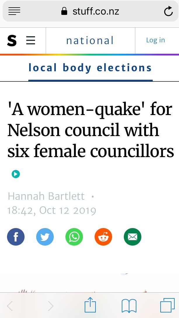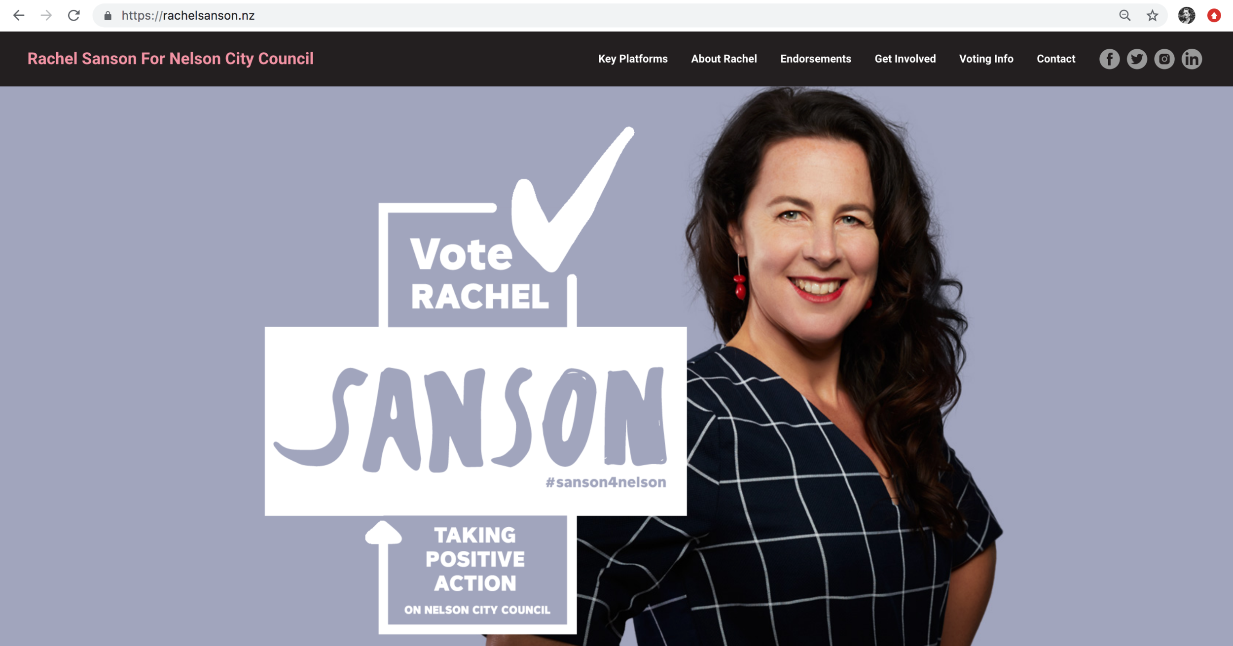 Rachel Sanson was the highest polling candidate in the Nelson election and received considerable press and commentary given the nature of the win and intent of the election objectives. With national media reporting there had been a “Woman-quake” in the area given the diversity of gender and age that was reflected in the overall voting statistics for the region.