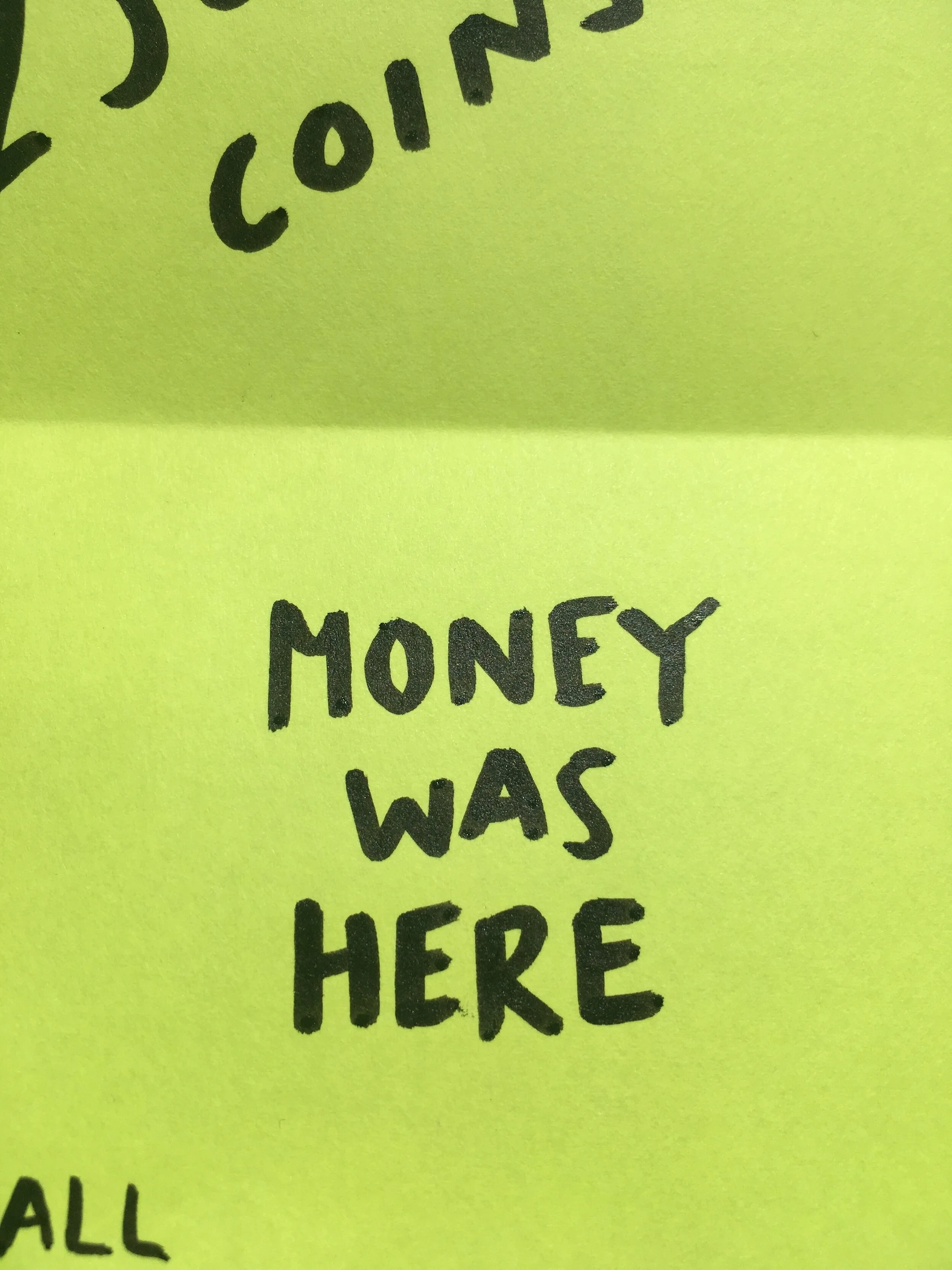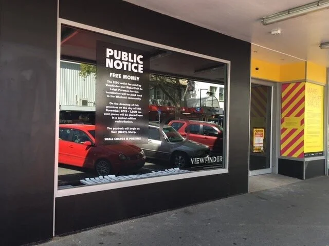 Small Change was a community payback that took place on the 19.11.19. This financial display featured as part of the publicly funded Viewfinder and Make/Shift Spaces functioned primarily as a social exchange and capital redistribution subverting conventions found in the arts, finance and commerce. Small Change attempts to examine the often bureaucratic systems and services that facilitate community engagement and expression within and of the arts.